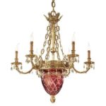 Illuminate your space with the luxurious charm of the Edgard 4300/8+4-sh pendant lamp from Italy. This classic piece exudes elegance with its brass finish and intricate crystal accents, adding a touch of opulence to any room. The concealed gold plating gives a rich, sophisticated look, while the red precious stone and Schoeler drops create a stunning focal point.