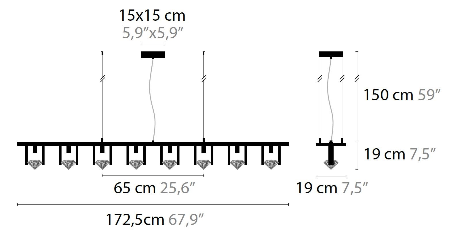 The Elements Of Love H8L pendant lamp is not just a lighting fixture; it is a work of art. The base of the lamp is adorned with sparkling crystals that add a touch of glamour and luxury to the design. The 8 GY6.35/12V/MAX.35W bulbs provide direct light that illuminates your space with a warm and inviting glow.