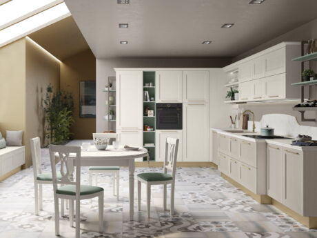 With its doors and drawers featuring elegant handles, the English Mood kitchen exudes luxury and refinement. The inclusion of extras such as islands and peninsulas adds functionality and versatility to the design, allowing you to create a space that is both stylish and practical.
