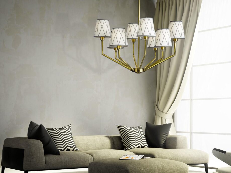 The antique brass finish of the Epoque 555/8 creates a warm and inviting ambiance, while the sleek design adds a touch of contemporary flair. This pendant lamp features 8 E14 sockets, allowing for a maximum of 42W bulbs to illuminate your space with a soft, direct light that is perfect for creating a cozy atmosphere.