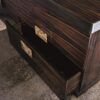 Crafted from premium leather and metal, Evelyn features four spacious drawers that offer both functionality and style. The leather-covered front of the drawers, paired with the iron frame base and top, showcases Longhi’s impeccable craftsmanship and attention to detail. The marble handles add a touch of opulence to the already luxurious design.