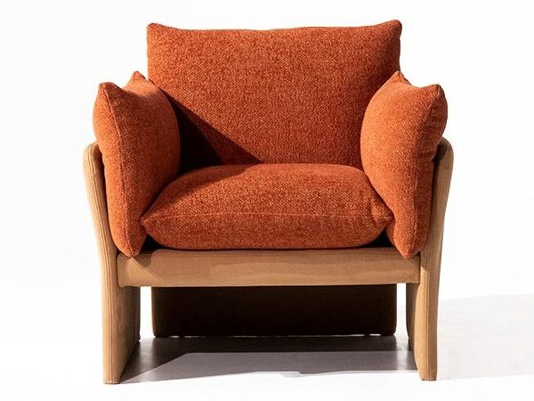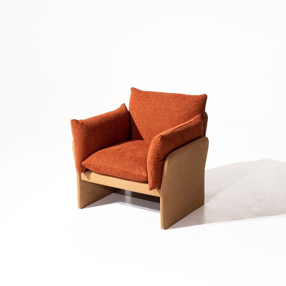 Elevate your interior design with the exquisite Farfalle armchair from Mantellassi 1926. This modern piece, designed by the talented duo Marco and Giulio Mantellassi, combines Italian craftsmanship with contemporary style to create a stunning addition to any space. The Farfalle armchair features a sleek design, with its shell in buff tone microfiber and pads in Boucle Galassia in a rich rust color, exuding elegance and sophistication.