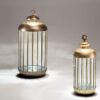 The Fata Morgana collection is a testament to innovation in lighting design, with its cylindrical shape and transparent glass panels creating a unique and sophisticated look. Available in antique gold or antique polished gold finishes, this floor lamp combines a sense of tradition with a touch of modernity.