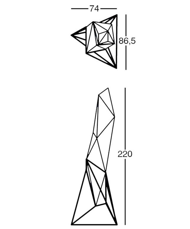 Introducing the striking Faz Outdoor Floor Lamp designed by the renowned Ramón Esteve for VONDOM. Inspired by the natural mineral formations found in the environment, the Faz lamp features captivating folding faces that create mesmerizing plays of light and shadow, resulting in a truly sculptural piece. With its design recalling the frozen quartz figure, the Faz lamp illuminates the surroundings with alluring volumes and an artistic presence.