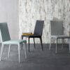 The Filly collection, since 2014, also offers a new version of these chairs with visible metal legs, available in white, anthracite grey, chrome, or black nickel. These painted metal legs add a modern and industrial touch to these already stylish chairs, making them a perfect addition to any contemporary setting.