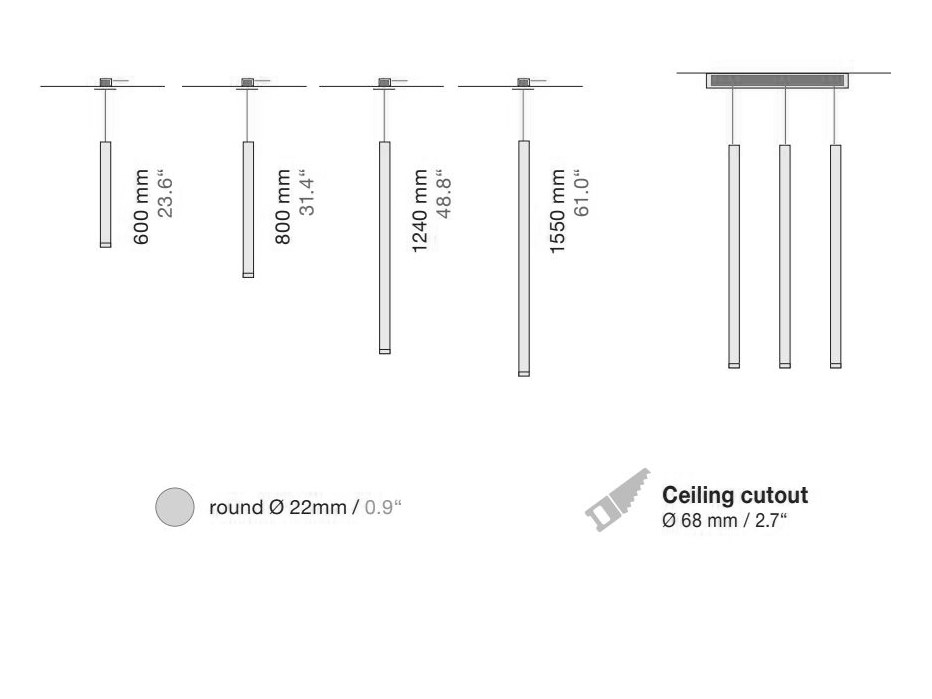 Whether you choose to suspend the Fino Pendant or mount it directly to the ceiling, this versatile lighting fixture offers endless possibilities for customization. Available in different lengths and with the option of a long shade, you can mix and match to create a bespoke lighting solution that perfectly fits your space.