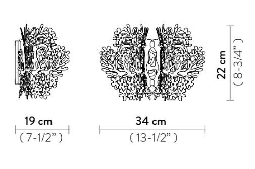 With its direct-indirect lighting type, the Fiorella Mini wall lamp creates a warm and inviting ambiance, perfect for cozy evenings or stylish gatherings. The intricate design of the lamp reflects the expressive forces and new figurativism that Slamp is known for, making it a truly unique addition to your decor.