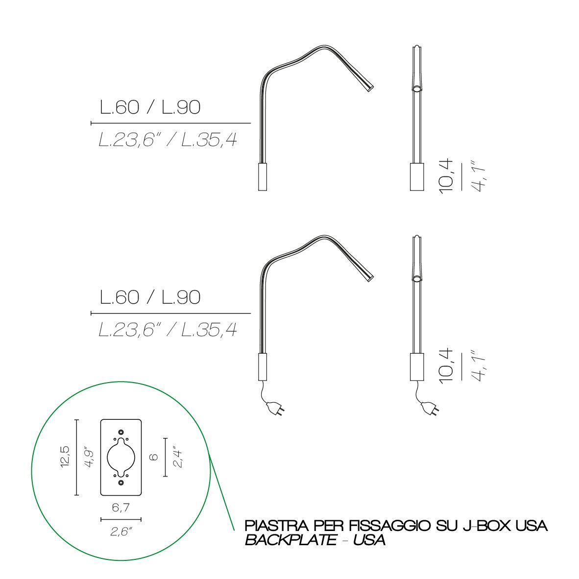 | Extras | with LED bulbs, with swing arm |