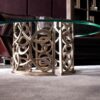 Made with high-quality glass, the Flora coffee table is not only stylish but also durable and practical. The clear glass top adds a touch of transparency to the design, allowing the beauty of the silver leaf finish to shine through.