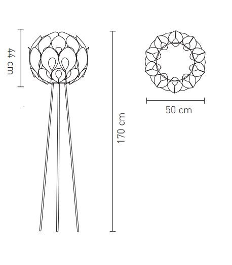 Available in a sleek silver finish, the Flora Silver floor lamp is an elegant addition to any space, adding a touch of sophistication and style. The innovative aluminum vaporization system gives the petals a glossy sheen, creating a mesmerizing play of light that mirrors the sun at its peak. Whether used as a suspended fixture or a floor lamp resting on slender legs reminiscent of a flower’s pistils, the Flora Silver floor lamp is sure to make a striking impression in any room.