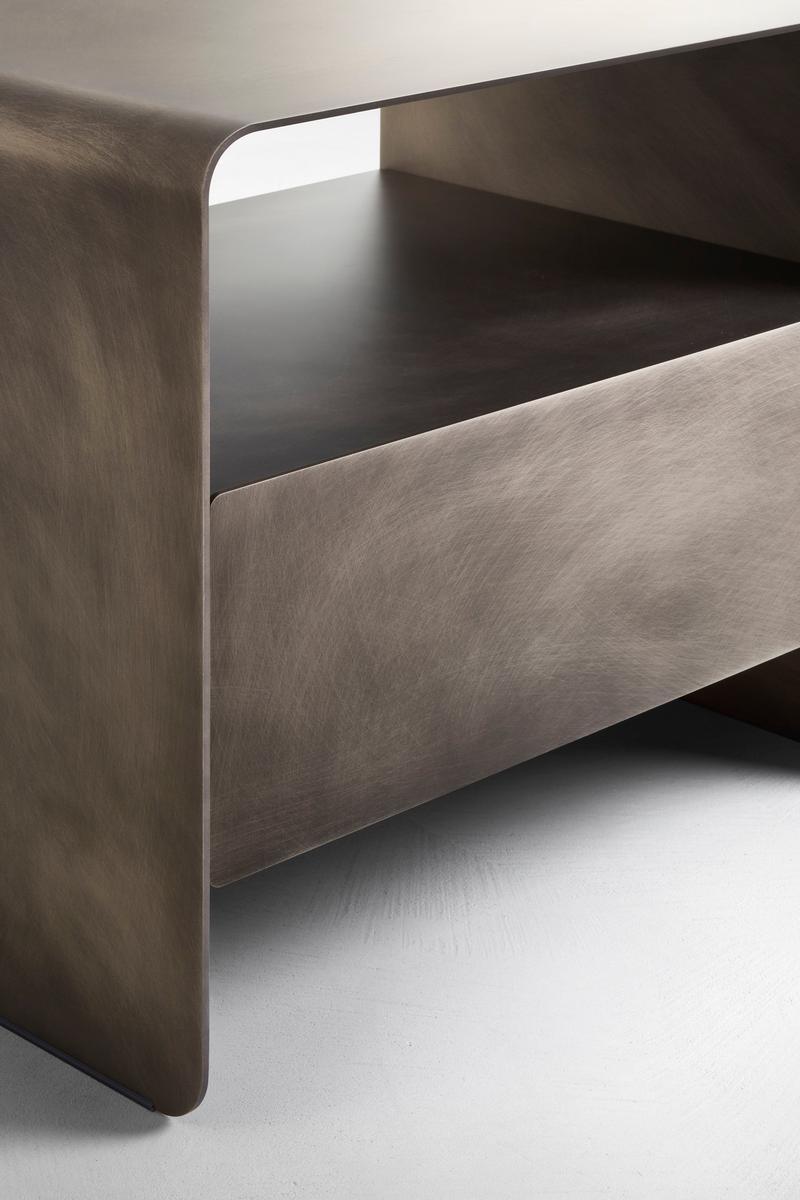 Elevate your bedroom decor with the stunning Foglio bedside table, designed by Pinuccio Borgonovo. This modern piece from Italy features a sleek rectangular shape crafted from high-quality metal. The Foglio bedside table is not just a functional piece of furniture; it is a work of art that will enhance the beauty of any room.