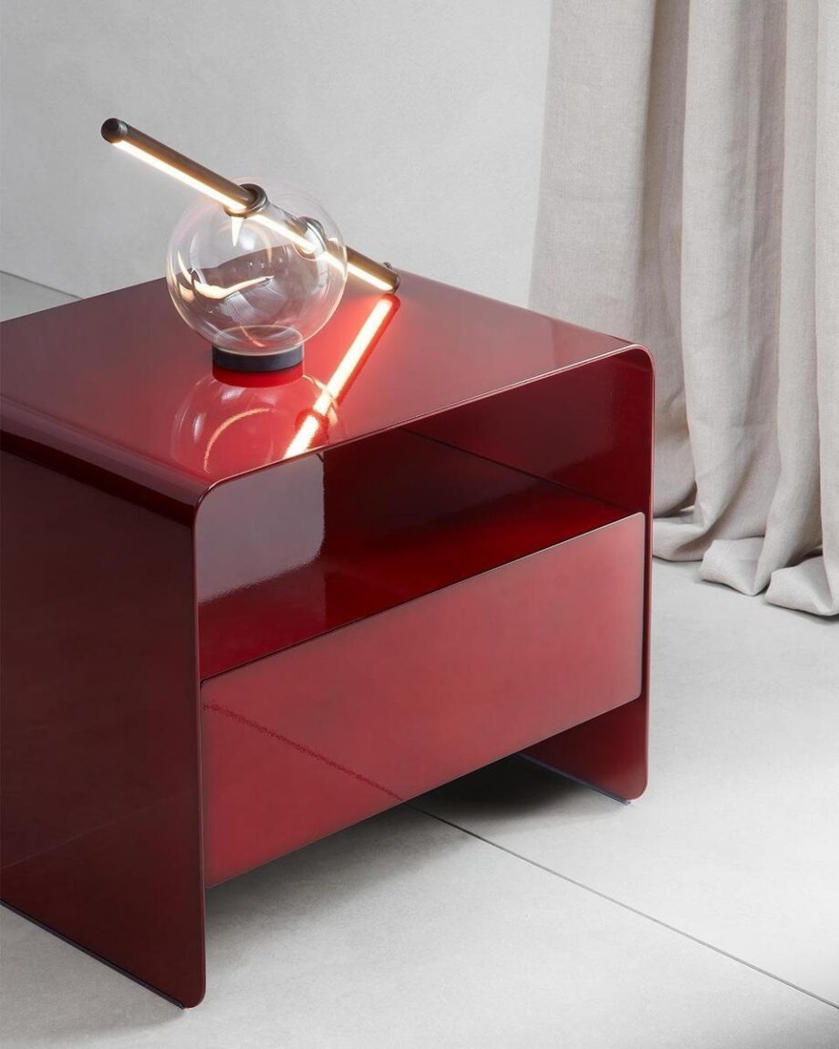 Available in finishes such as matte polished, oxide, and glossy black, the Foglio bedside table exudes elegance and sophistication. The high-resistance slides ensure smooth operation of the drawer, while the different front panel options allow you to customize the look to suit your style.