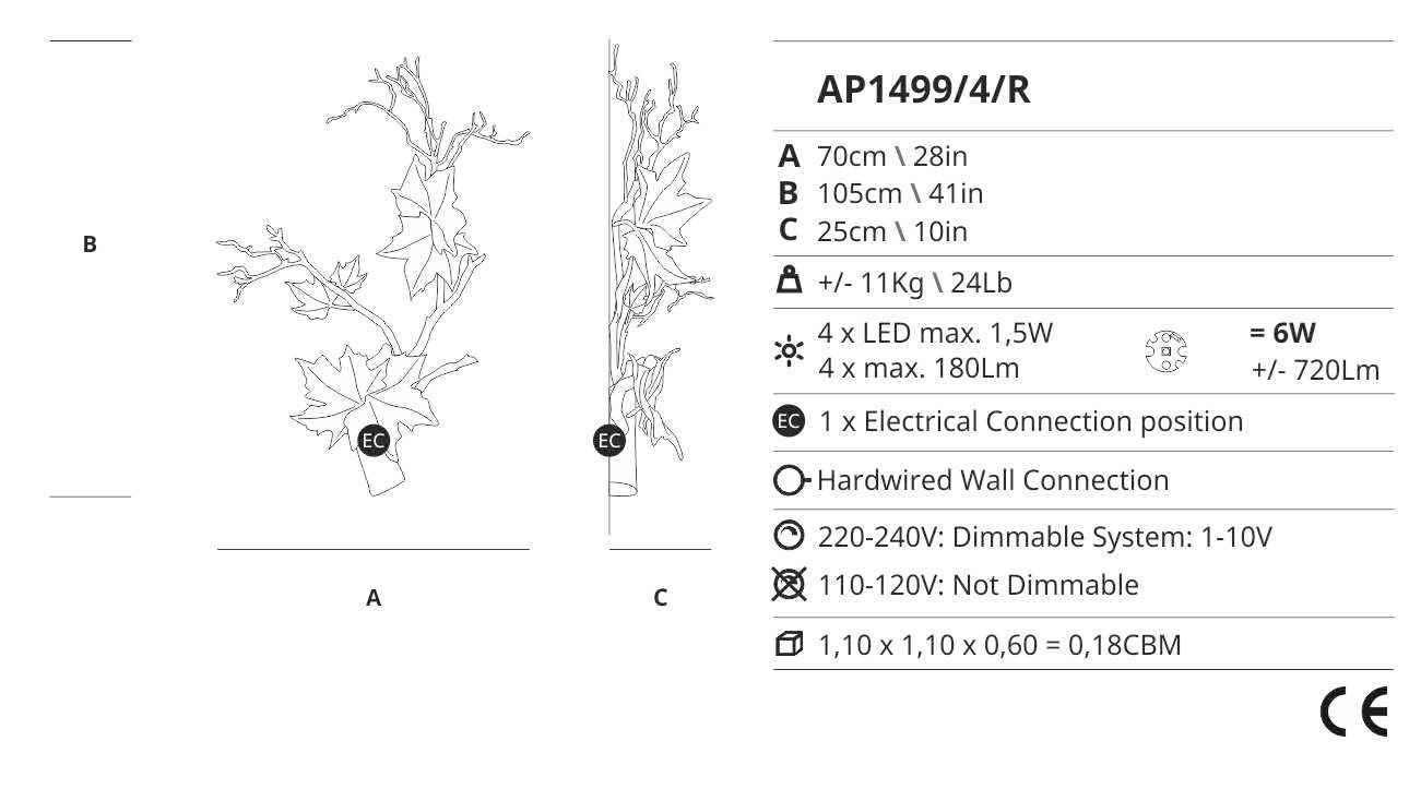 Designed to capture the essence of nature and bring a touch of magic into your home, the Folio Ap1499/4/r wall lamp is a striking decorative piece that will elevate your interior design. With its floating structure and tranquil expression, it stands out as a captivating lighting fixture that will add a touch of drama to your space.