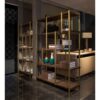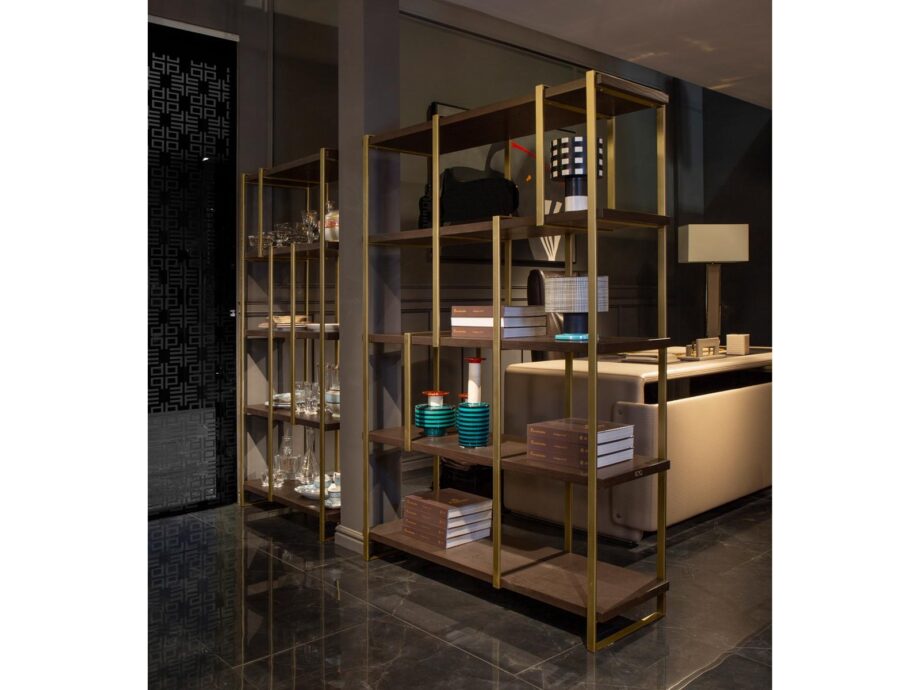 The metal frame of the Fortytwo Bookshelf is finished in a luxurious Goldchamp matt, adding a touch of glamour to the contemporary design. With its open shelving, this bookshelf is perfect for showcasing your collection of books, art pieces, and decorative items in style.