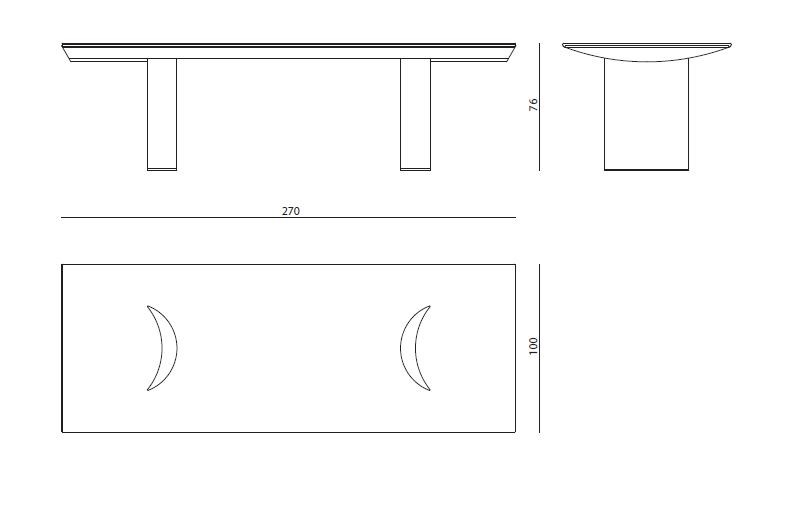 The primary construction of Freddie features gleaming 316 hardened steel, with curved under-top and segment legs that boast curved and raised surfaces. The top is available in either stone or concrete, adding a sophisticated touch to the design. The decorative glue finish on the top creates a metallic-like texture, while the crescent-shaped top with decorative friezes in pure steel adds a unique and elegant touch.
