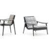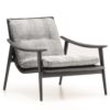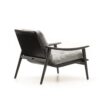 The armchair comes in ash color, featuring an ultra-lightweight aesthetic with a minimal frame made of ash wood. The frame with a Liquorice color stained finish hosts a padded seat and backrest cushion, designed as a single element. This unique design offers a comfortable seat that cradles the body, wrapping it in the warmth of the wooden structure.