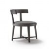 The Gelsomina chair features a unique semi-circular wood seat back with a plush goose-down cushion for added comfort. With its sleek lines and feminine curves, this chair is a true statement piece that will elevate any space. Perfect for restaurants or dining areas, the Gelsomina chair is designed with armrests and an open back for a contemporary look.