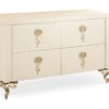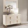 Crafted from premium-quality wood, the George Chest of Drawers exudes timeless charm. The wooden frame, characterized by its square-shaped bevelled edges, is the perfect blend of strength and style. The wood, chosen for its durability and beauty, is further enhanced with a delicately hand-decorated finish in antiqued mother of pearl or a spatulated finish, adding an extra touch of grandeur.