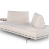 One of the key features of the Gianduiotto is the extension of the base offering an integrated magazine rack. This extends the functionality of the sofa, making it more than just a seating arrangement. The extension can also serve as a support surface or act as a chic coffee table that matches the copper finish metal feet.