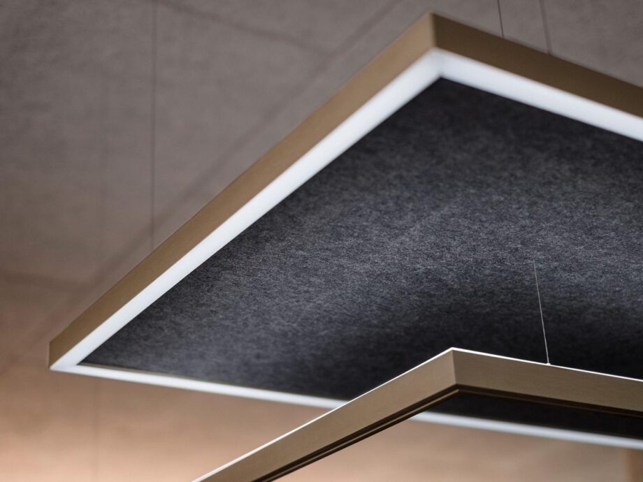 Enhance the acoustics of your room with the optional Acoustic Set, which reduces impact sound and improves overall room sound quality. The Gioco pendant lamps come with a standard mounting system, including a shade and four steel cables for easy installation.