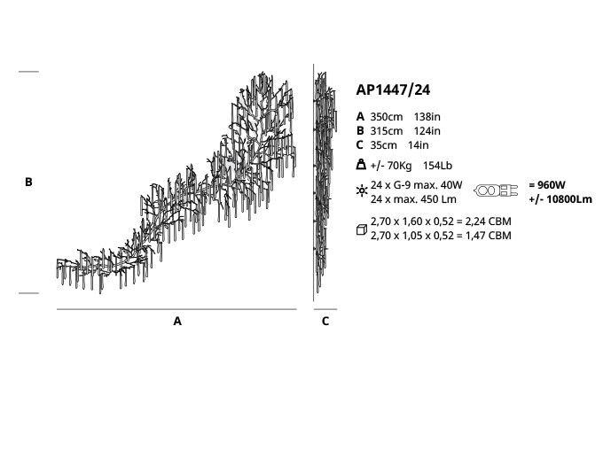The exquisite design of the Glamour wall lamp is inspired by the beauty of winter nature, where trees transform into icy sculptures. Its direct light feature creates a warm and inviting ambiance, ideal for creating a cozy atmosphere in any room. Whether you place it on a wall or ceiling, this versatile piece will surely make a statement in your interior décor.