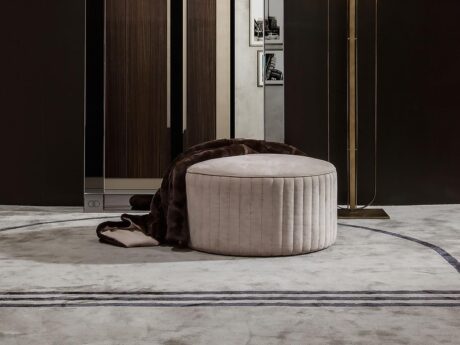 Handcrafted by skilled Italian artisans, the Godwin pouf showcases exceptional attention to detail and exceptional craftsmanship. Its round shape adds a touch of sophistication to any room, making it a standout piece that will elevate your interior style.