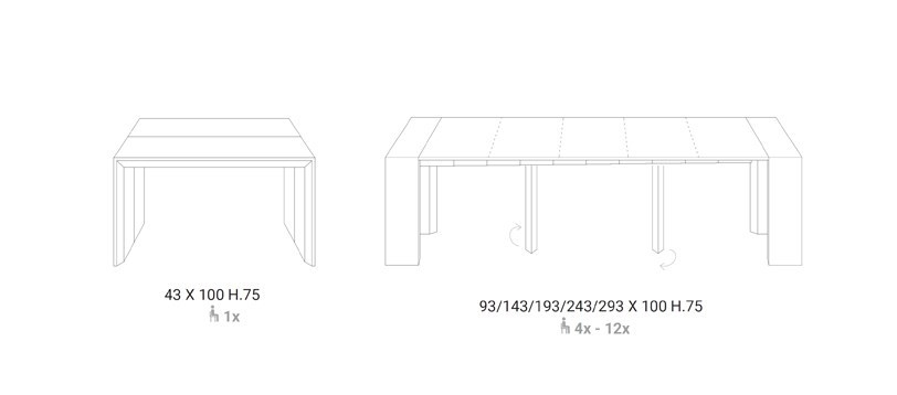 The Golia console table features an innovative extending mechanism with five separate augmentations, each increasing the length by 50 cm. This allows you to customize the size of the table to suit your needs, whether you are hosting a dinner party or simply need extra surface space.