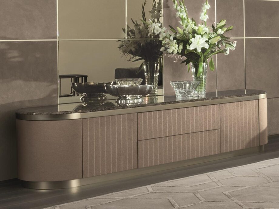 The use of high-quality wood, metal, veneer, natural stone, and leather materials elevates the sideboard to a level of luxury that is unmatched. Whether you choose the bronze or smoky bevelled mirror top surface or opt for the Bardiglio Nuvolato or Calacatta Gold marble finish, Gordon exudes elegance from every angle.