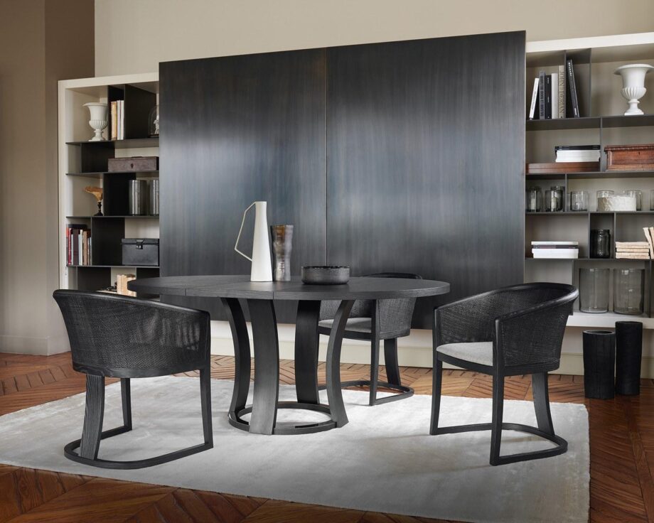 Elegance and functionality meet in the Grace extensible table, a stunning piece designed by Mauro Lipparini. Crafted in Italy from high-quality ash wood, this modern table features a round top with hidden extension leaves, allowing you to easily accommodate more guests in your living room. The sleek design is complemented by metal details at the base, adding a touch of sophistication to any space.