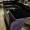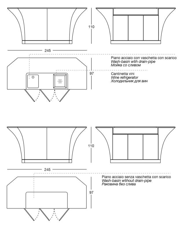 Featuring a sleek combination of wood, leather, lacquered metal, and veneer, Grandelon exudes sophistication and class. The satin steel countertop, available with or without a basin and taps, offers a perfect surface for mixing cocktails and entertaining guests. Choose from a variety of door finishes, including ebony, Canaletto walnut, or Sycamore frisè, to suit your personal style and taste.