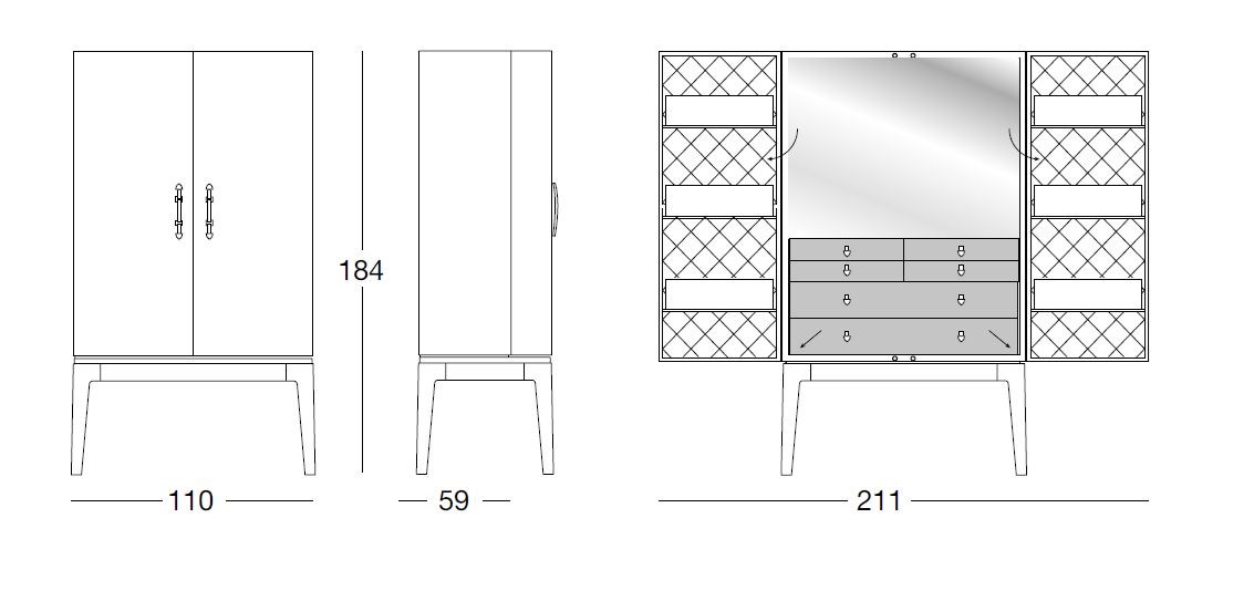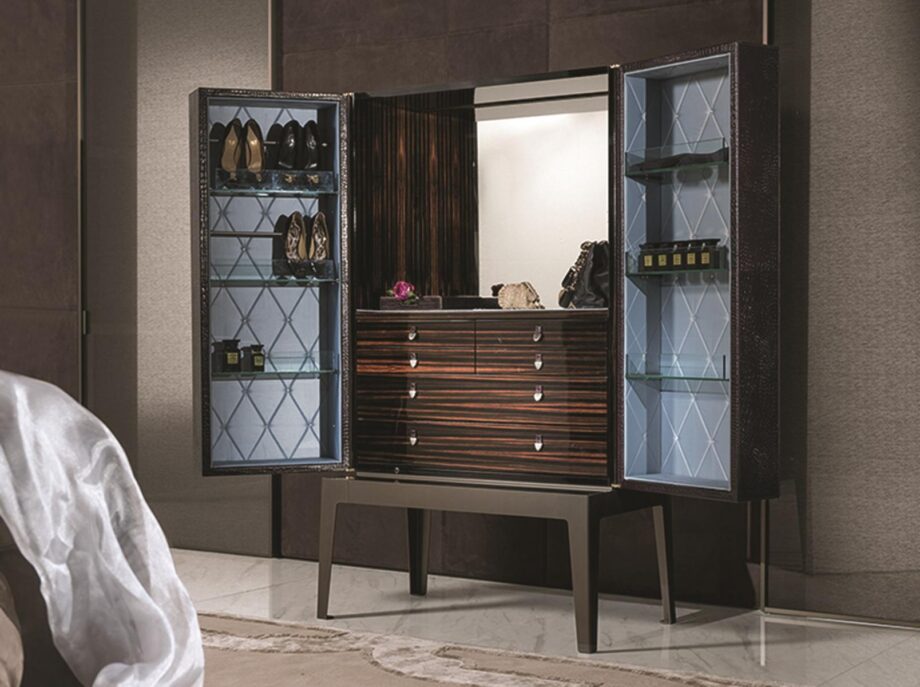 Crafted with meticulous attention to detail, the Grandeur Evo features a tall cabinet with carefully designed internal accessories that cater to its intended function. Whether used in a living room or bedroom, this versatile piece offers ample storage space while adding a touch of glamour to any space.