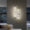 The Greta pendant lamp features an innovative design that showcases a harmonious interplay of light and glass. The LED light source, positioned on a sleek metal bar, illuminates the intricately cut crystal components, creating a mesmerizing display of reflections and colors. The result is a subtle halo of light that adds a touch of sophistication to any room.