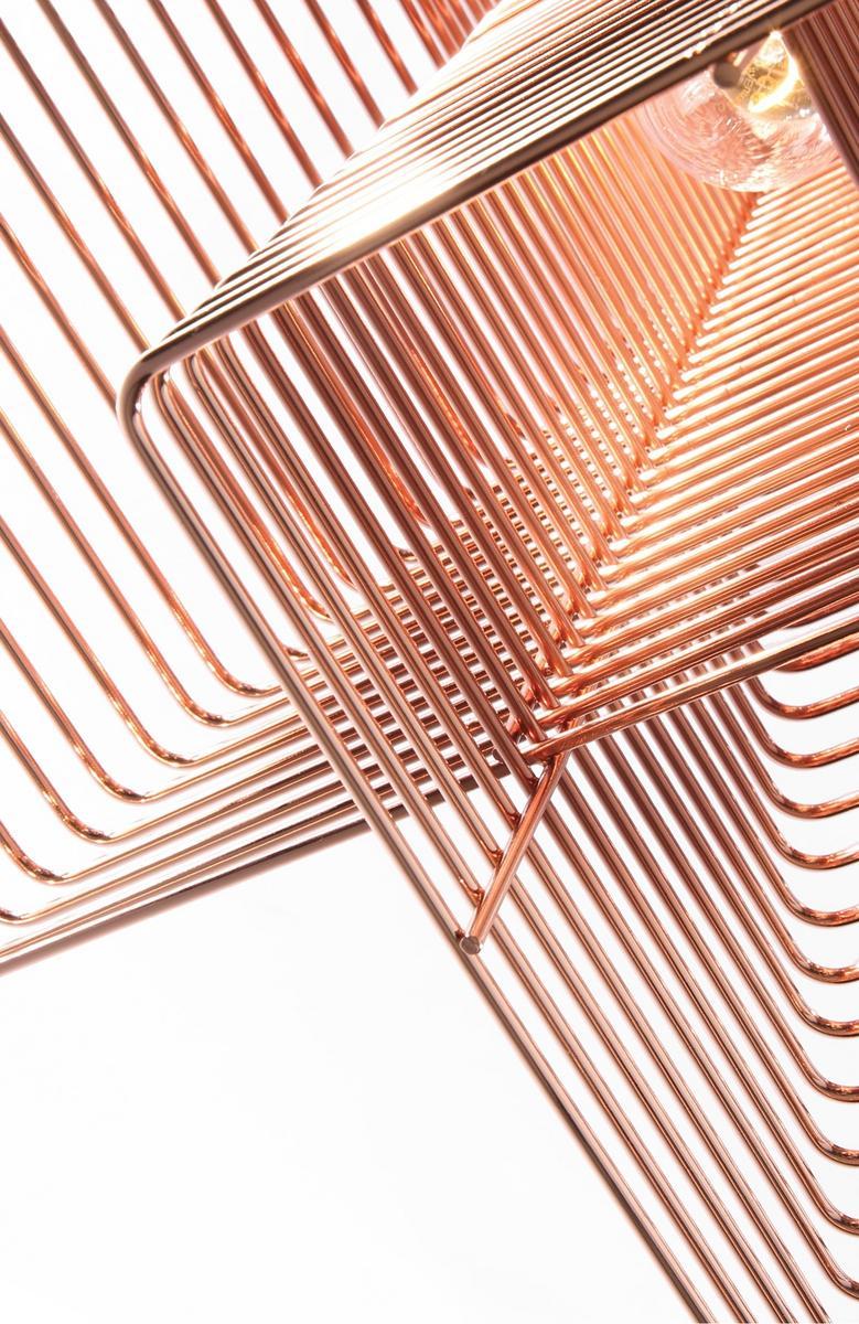 The Grown floor lamp casts a direct light that creates a mesmerizing ambiance in any room. Its unique design features a sequence of wire threads that play with the light, creating a dynamic and artistic effect. Available in opaque white and copper colors, this lamp is sure to enhance the aesthetic appeal of your space.