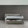 The bed’s clean lines and generous proportions create a sense of luxury and comfort, making it the perfect centerpiece for any contemporary bedroom. The headboard is adorned with an elegant upward line, adding a touch of sophistication to the design. Additionally, the headboard houses a convenient mechanism that allows for two different reading positions, ensuring maximum comfort.