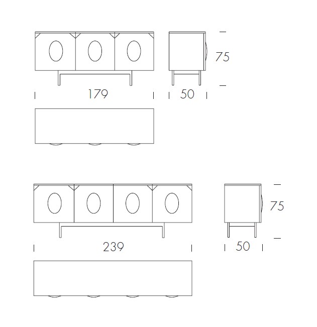 The dreamlike and suspended dimension of this sideboard is reminiscent of the works of the renowned American painter Edward Hopper. The doors, adorned with convex crystal, bronze, or fumè mirror, feature a striking convex oval in the center that adds a touch of artistry to the piece.