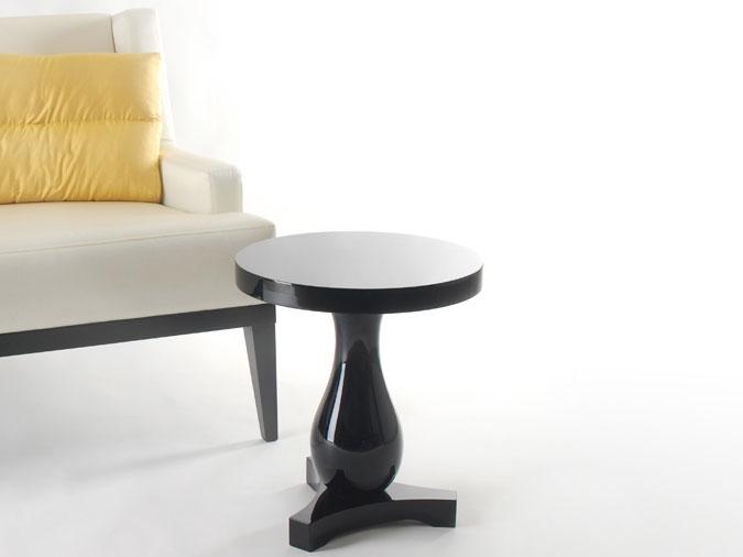 Available in solid oak, mahogany, or walnut, this luxury coffee table adds a touch of charisma to any modern living room. It is finished with a high gloss black or white lacquer that enhances the natural beauty of the wood grain. The delicate silhouette of this round coffee table makes it an ideal addition to any interior setting, whether traditional or contemporary.