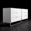 The unique ‘bureau caused’ design of this collection sets it apart, with its rounded back corners and chrome-plated handles adding a touch of luxury. The metal underframe provides stability and durability, ensuring that this piece will stand the test of time. Each drawer is equipped with controlled automatic closing, making it both practical and stylish.