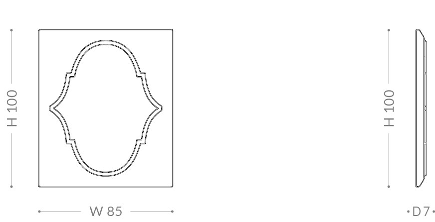 Crafted with precision and care, Ike’s frame is composed of a plywood and MDF panel, veneered with Canaletto Walnut or Makassar Ebony, and available in a sophisticated chocolate finish. The central mirror is extra white, providing a crystal-clear reflection that adds depth and dimension to your space.