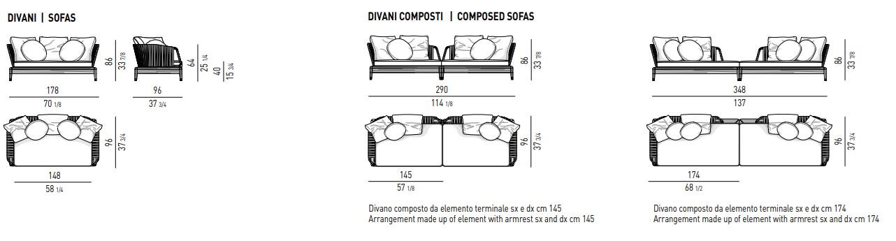 The sofa is further enhanced by an upholstered padding that ensures comfort without compromising on style. The mix of high-quality fabric and the macro woven polypropylene webbing breathes new life into the upholstery, exemplifying Dordoni’s vision of creating furniture pieces that are as pleasing to touch as they are to the eyes.