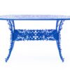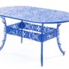 Available in a range of vibrant colors including red, white, dark blue, and more, the Industry Outdoor Table allows you to customize your outdoor space to suit your style. The collaboration between Seletti and Studio Job brings together Italian craftsmanship with the unique design sensibility of the creative duo, resulting in a collection that is both visually striking and functional.