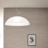 The Infinita Sp pendant lamp features a sleek white shade finishing and frame, creating a clean and minimalist look that complements a variety of interior styles. The lamp is available in both pendant and ceiling versions, offering versatility in how it can be displayed in your space.