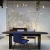 The Intervalle table is a true work of art, showcasing the beauty of natural wood with its eight different wood options. The minimalist design of the table highlights the craftsmanship and attention to detail that went into its creation. The tapered base and central opening create a visually striking silhouette that is sure to impress your guests.