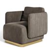 The Jacqueline armchair features a warm and inviting design, with a structure that envelops you in comfort. The soft, plush upholstery and impeccable attention to detail make this armchair a standout piece in any setting. The sleek metal base adds a touch of modernity to the overall design, while the unique pleated detailing on the back and armrests adds an extra layer of sophistication.