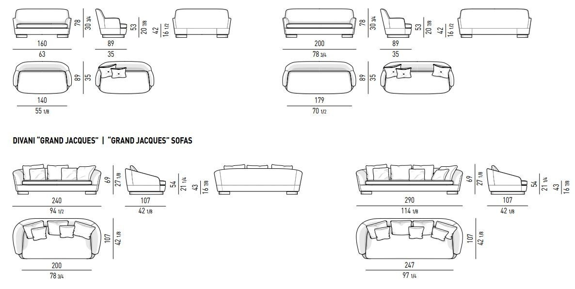 But that’s not all. The Jacques collection also includes a variety of ottomans, each featuring a sophisticated stitched motif and a square decorative button. Like the Jacques sofa, they offer a winning combination of comfort, elegance, and style.