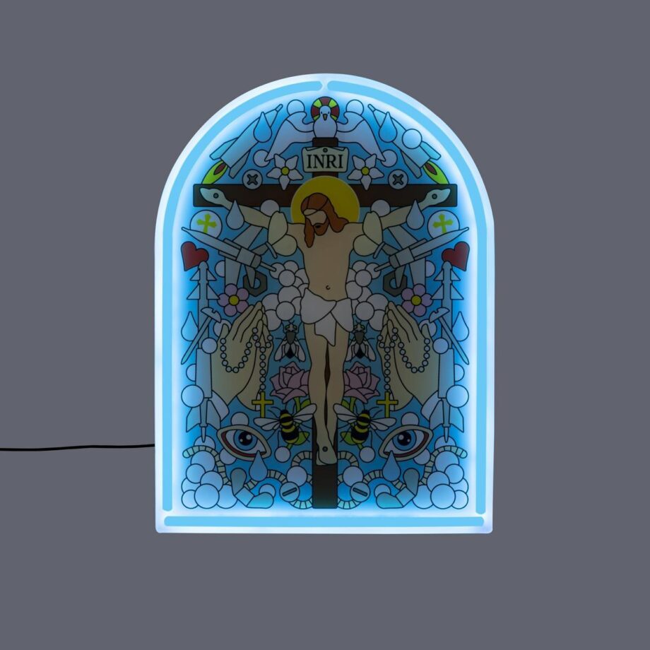Don’t miss the chance to bring a piece of religious art into your home with the ‘Jesus’ LED sign. Contact us now to inquire about pricing and availability, and get ready to experience the divine beauty of this stunning light fixture. Add a touch of spirituality to your home with the ‘Jesus’ wall lamp from Studio Job.