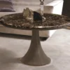 Available in a range of finishes such as glossy or matte ebony, Canaletto walnut, and sumptuous leather covering the curved sides, Julian exudes sophistication and elegance. The top is adorned with luxurious marble finishes including Guatemala Green, Corteccia, and Rosso Levanto, adding a touch of opulence to any room.