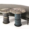 Karen features a captivating round shape with a chic ring base adorned in P.3 Cat. Suede leather or P.9 Cat. Nubuck leather, exuding sophistication and style. The base is accentuated with a 30mm metal insert available in a range of exquisite finishes, including black rose gold, bright light gold, and matt satin bronze, among others.