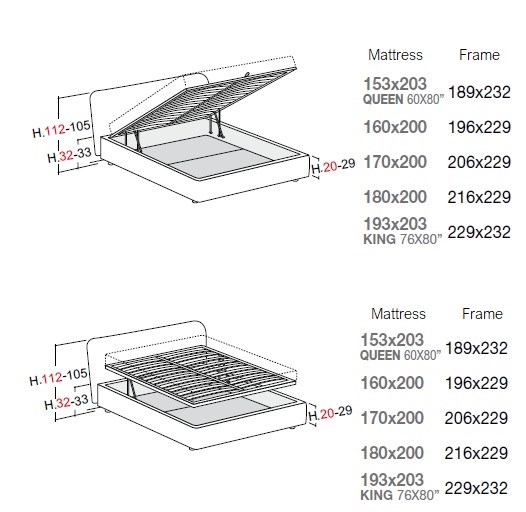 This bed also offers a completely removable cover, available in eco-leather or fabric, offering ease of maintenance without compromising on its style quotient. However, the leather headboard is non-removable, adding a dash of plush luxury. Customization options are also available with a box of H 29 and H 29 easy up. Upon request, you can also get a box of H 20 and H 20 easy up.
