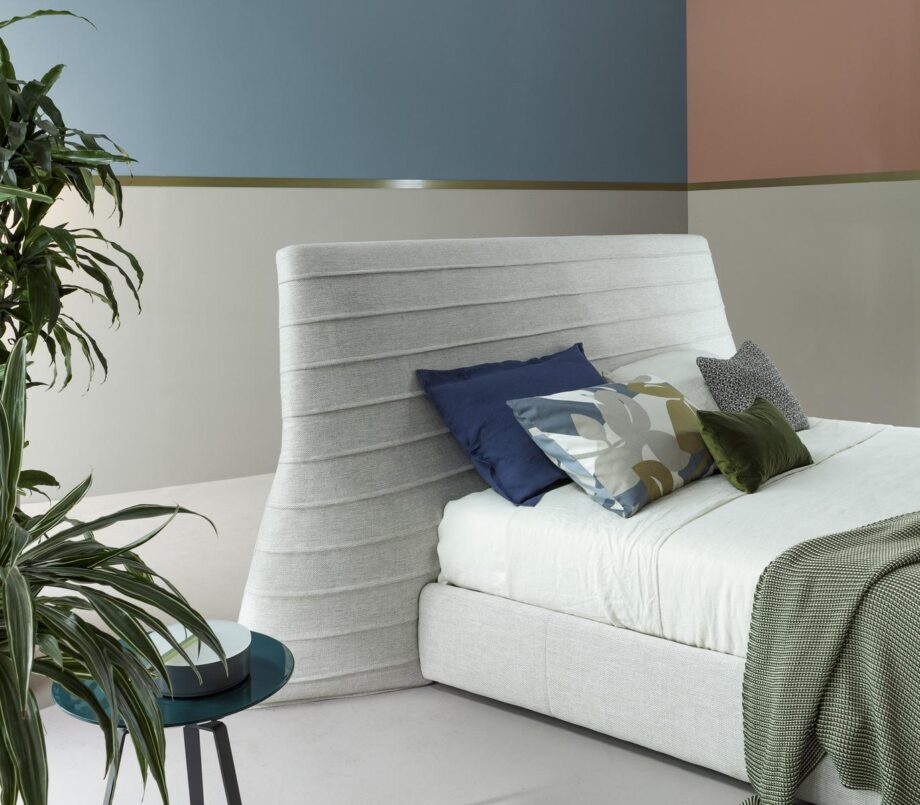 Delicately crafted with a high upholstered headboard, the Kenobi bed epitomizes comfort and style. The headboard is a defining feature, with outer flaps that gently curve backwards to accommodate your bedside table. It’s not just a bed, it’s a statement, a testament to your refined taste in interior decor.