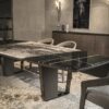 Introducing the exquisite Keope table from Longhi’s Loveluxe 2020 – sartoria collection, designed by the talented Giuseppe Viganò. This striking table is a masterpiece in contemporary design, featuring a distinctive sectioned top available in luxurious finishes such as Emperador Dark marble, Bardiglio Nuvolato marble, and glossy/matt ebony wood.